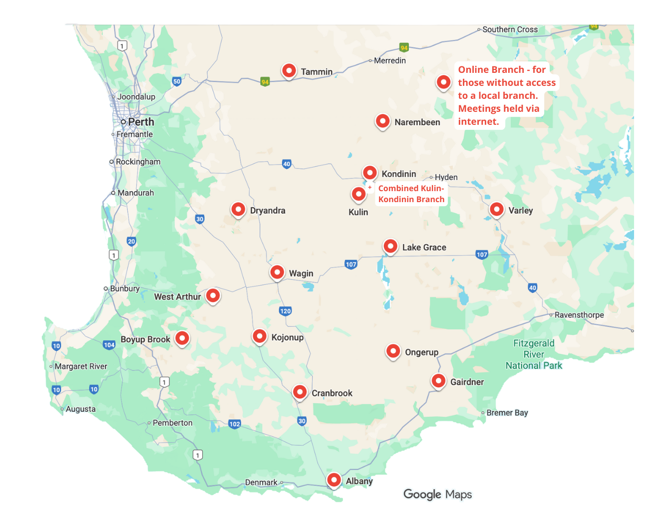 Click on the map to see all of our Branches in Western Australia