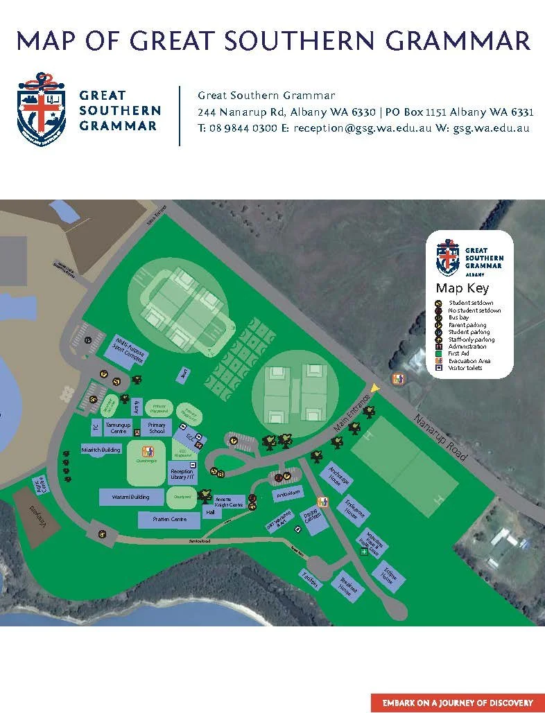 NOTE; When you arrive at the school, please enter the school via the main entrance,(opposite the café/caravan park), follow the road around to the right and park in the carpark to the right of the looped driveway (see attached map). Guests will be greeted upon arrival and directed to the Pratten Centre. - Map attached below